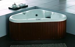 Компактная гидромассажная ванна с подголовником, пятикомпонентным смесителем, массажными форсунками и подводной подсветкой. Модель SR5C023 для корректировки изьянов тела, кожи и для полного релакса.